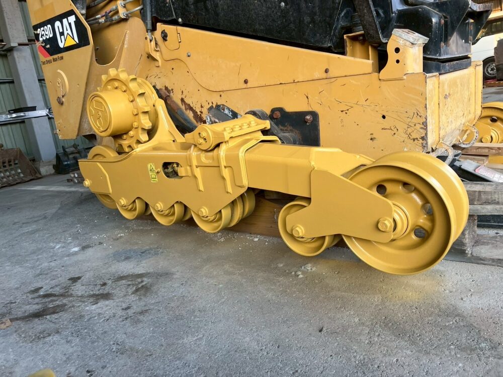 本日はCAT 259Dの足回り塗装&ゴムクローラー交換の様子をお届けします。