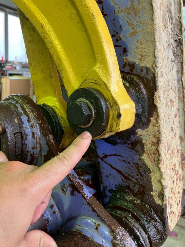 弊社ヤードに搬入後、まずはバケット周りを点検し、必要な部品をピックアップしていきます。