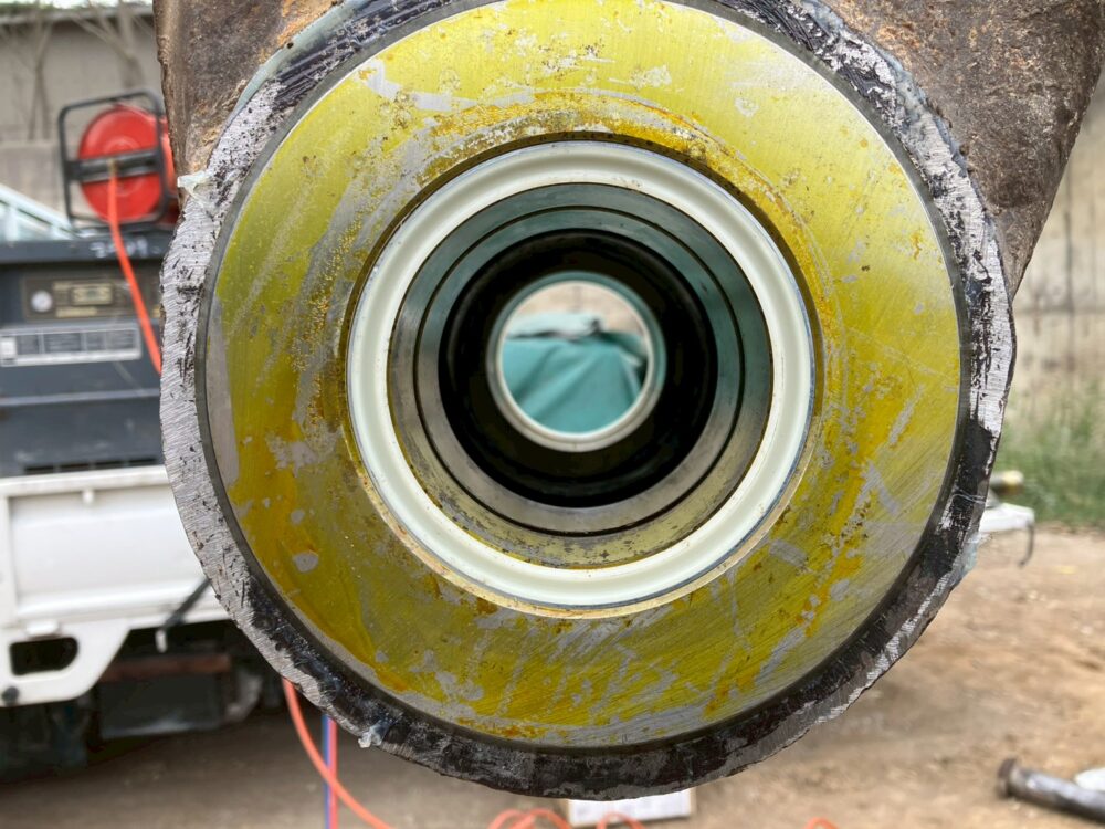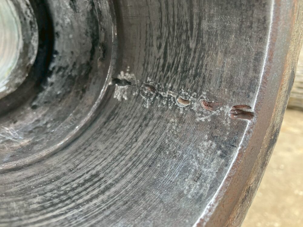 この手順2のブッシュを抜くのに大変苦労しました。過去にブッシュ交換修理を行なっていたようで、ガスで本体まで傷がついていました。バリ取りをせずにブッシュを圧入すると、次回交換の際が大変です。次回の修理依頼が彩重機でなかったとしても、同業者の方が快適に作業できるよう丁寧に修理します。