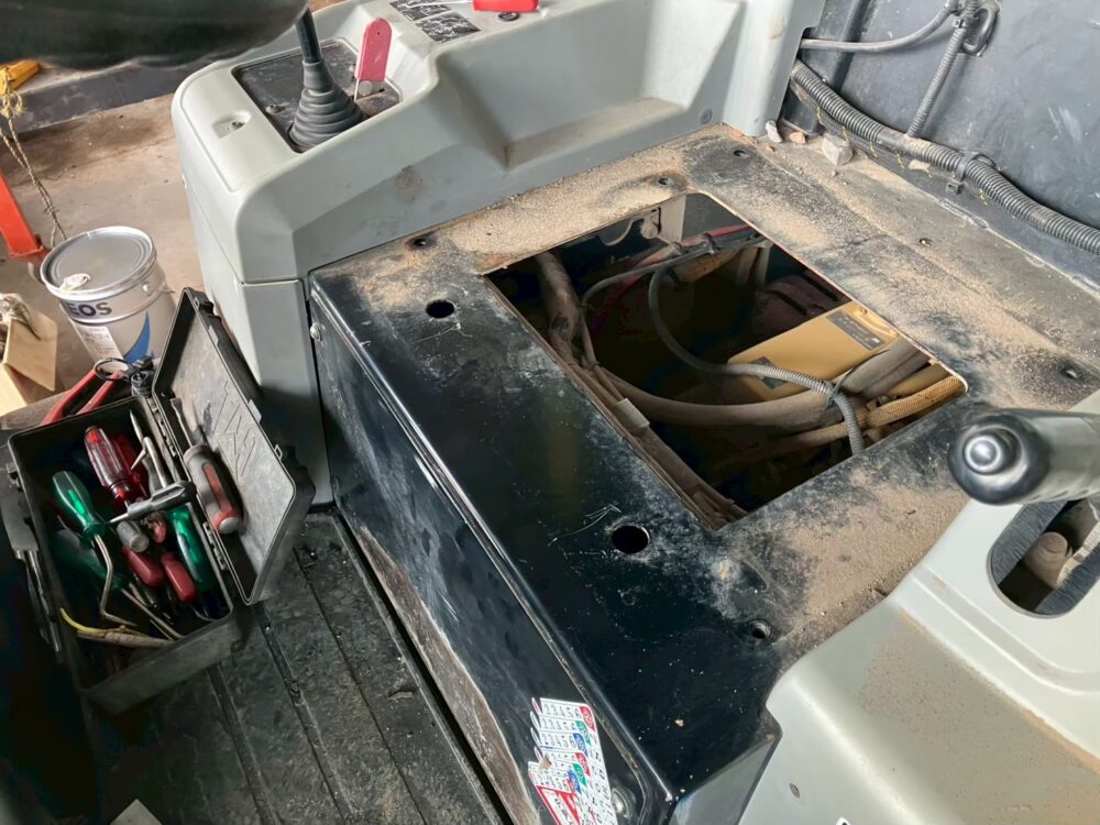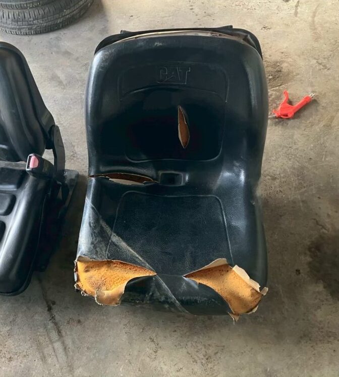 今回は、CAT902C ホイールローダーの修理の様子をお届けします。「オペシートがボロボロで、見栄えも座り心地も悪いので交換してほしい。」とご依頼いただきました。交換するシートは、コストを抑えるために社外品を使用していきます。