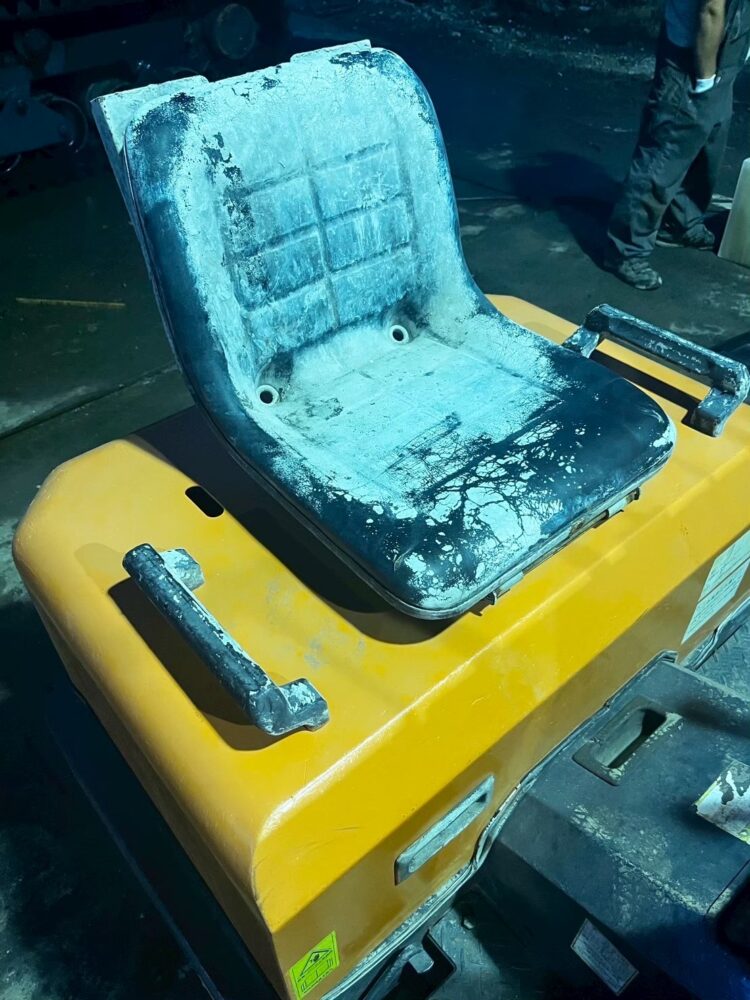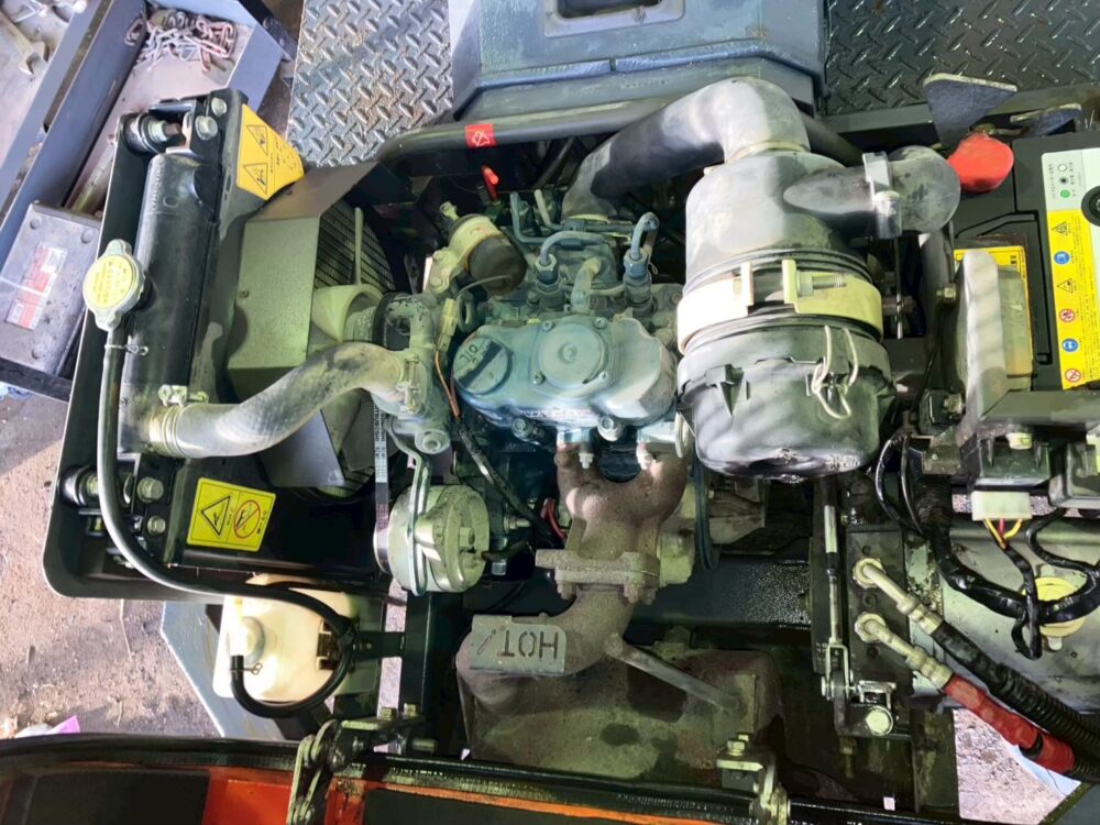 今回はまだまだローアワーの機械の点検でしたが、過去の現場の環境なのか、エンジンルーム内にも生コンが付着していました。使用時間はもちろんですが、作業環境によっても定期メンテナンスの時期が早まったりする可能性もあります。