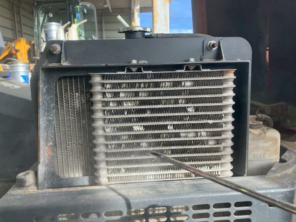 ラジエーター・オイルクーラーにほこりがかなり付着しています。詰まっていると、エンジンが冷却されずオーバーヒートの原因となります。コアやフィンを傷つけないよう、丁寧に清掃していきます。