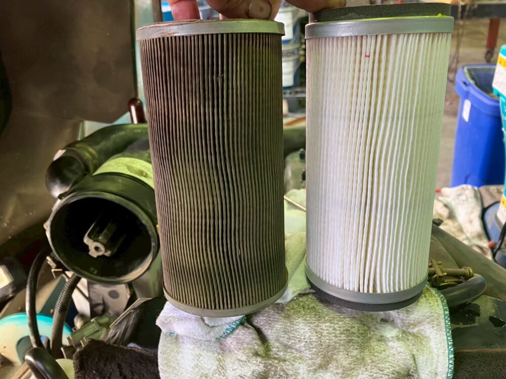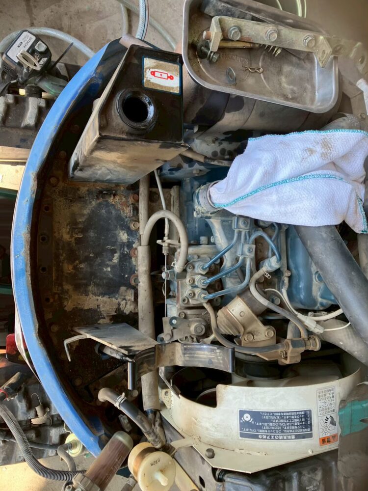「今まで懇意にしていた修理業者さんが廃業してしまった。」とのことで、彩重機にご依頼いただきました。しばらくの間メンテナンス等もされていなかったそうなので、今回は油脂類やフィルターを全交換していきます。