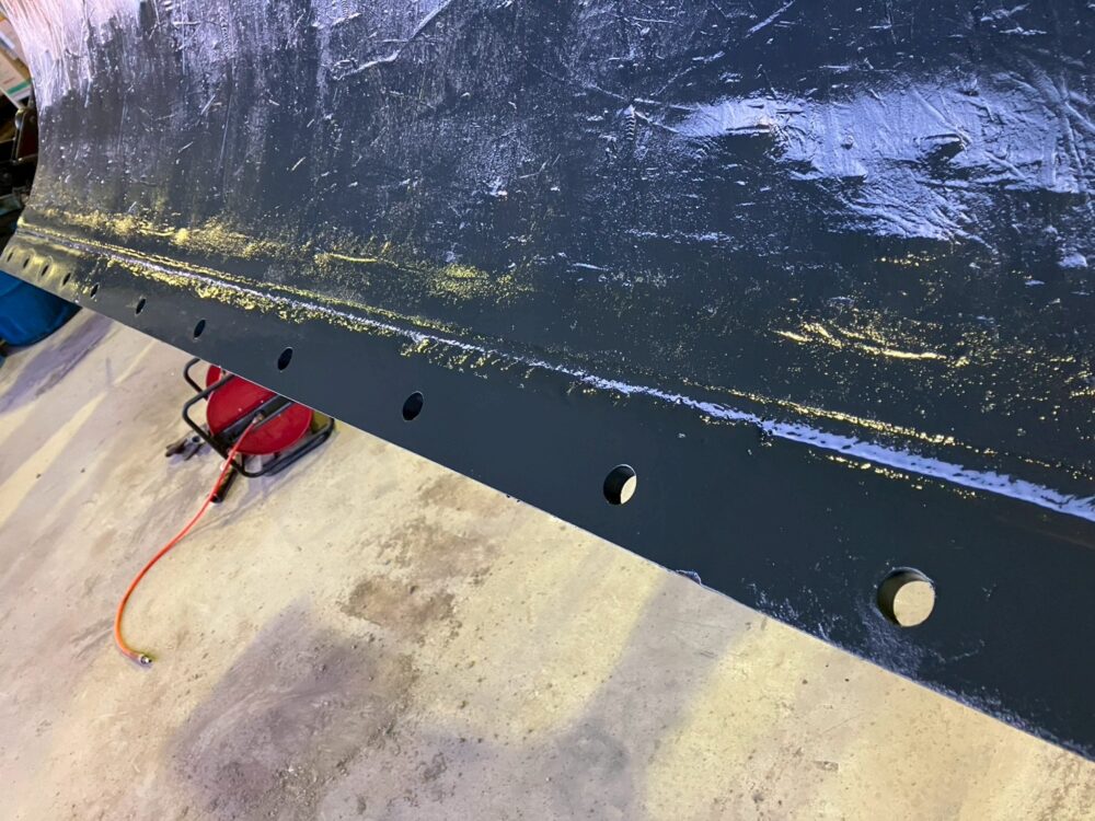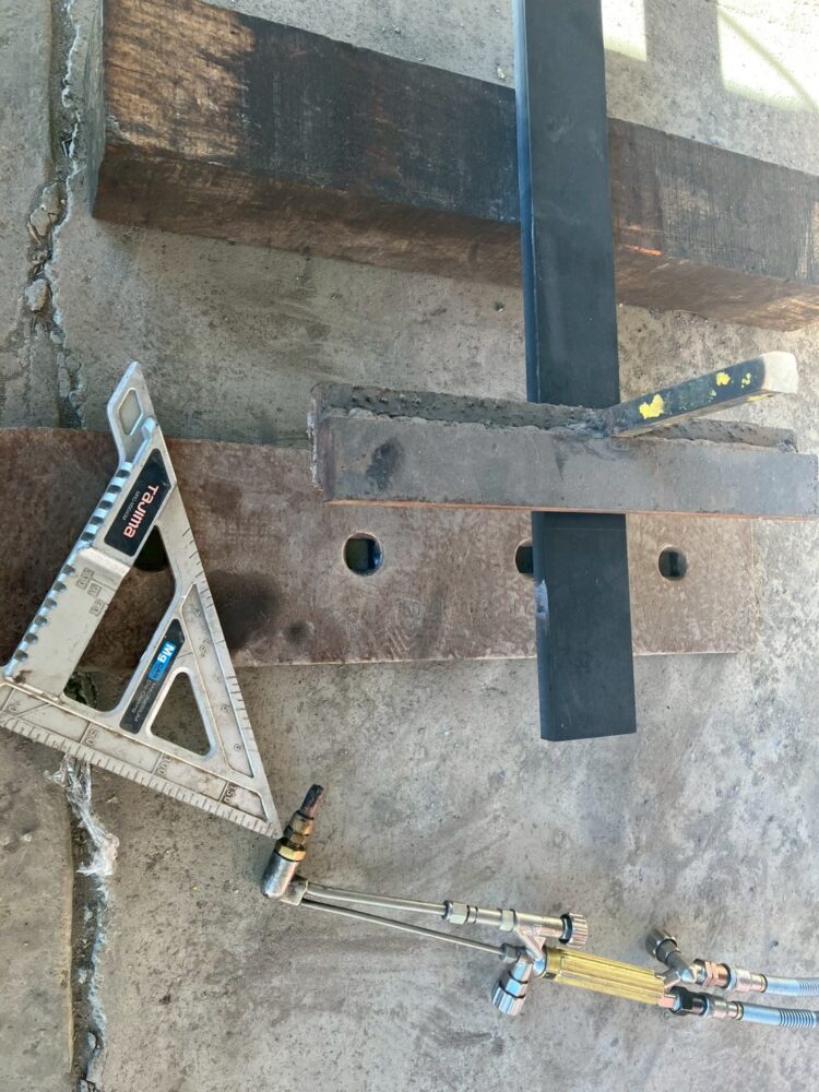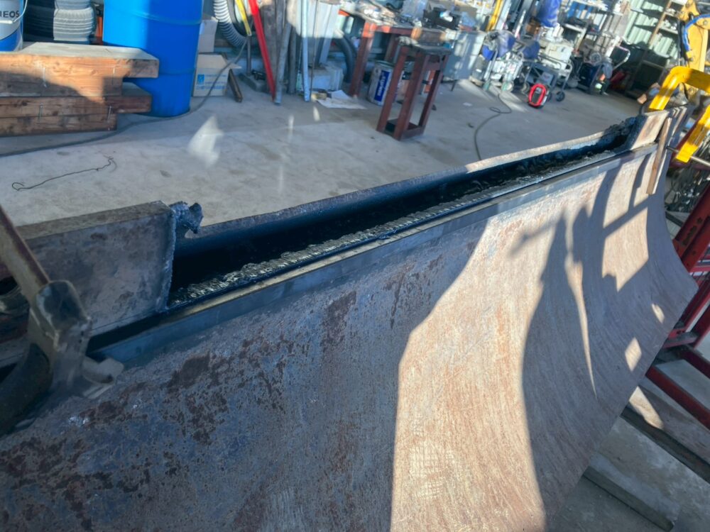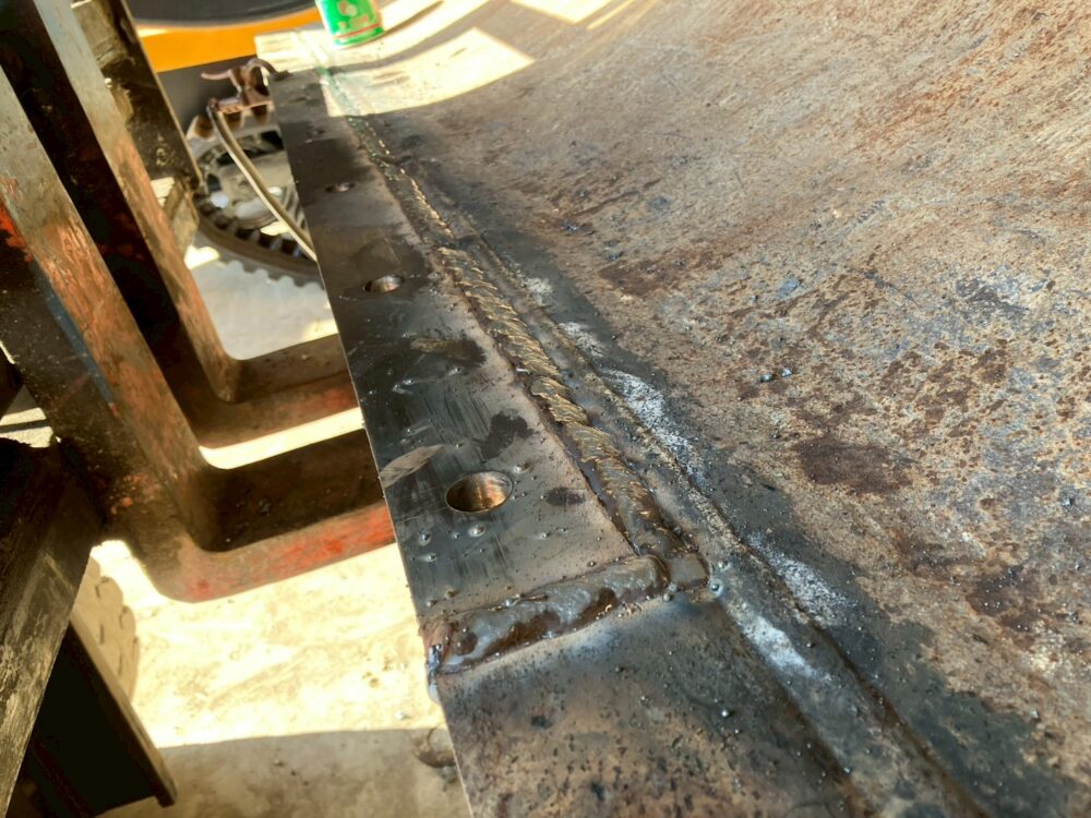 板金塗装・溶接関連 日立ZX135US-6 排土板曲がり修理 before 排土板を下から見ると、結構曲がってしまっているのがわかります。これでは整地作業の時に結構なストレスになってしまいます。 after 修理が完了し、排土板を取り付けました。早めの修理が、重機オペさんの快適さにつながります。 ご依頼背景 こんにちは、彩重機エンジニアリングです。 本日は、日立建機の油圧ショベル・ZX135US-6の排土板修理の様子をお届けします。「ブレードが曲がってしまっており、整地しづらくて困っている。」でご相談いただきました。 【修理方法】 排土板を本体から外す。 エッジを外し、曲がってしまった部分をガスで切断する。 切断した部分に合わせるため、サイズを測り鋼材を切り分ける。 エッジを取り付けるボルト穴の位置を罫書(ケガ)き、ボール盤で穴を開ける。 鋼材を仮付けし、ズレがないか確認。裏表両面から本溶接をする。 グラインダーで表面を均し、サビ止めのための塗装をする。 日立純正のエッジを取り付け、排土板を本体に取り付けて作業完了。 【同じようなお悩みの方へ】 ブレード曲がりで整地がうまくできないのは、重機オペの方にとってはかなりストレスになると思います。こういったストレスをなくすことが、快適な現場づくりの第一歩になるのではないでしょうか?ぜひ、お手持ちの機械を点検してみてくださいね。 その他の溶接関連の修理事例はこちらから 彩重機は溶接も得意です!ぜひおまかせください! LINEお友達登録はこちらから 詳細説明 まずは曲がってしまっているエッジ部分を切り落とします。 切り落としたエッジ部分に合わせて、鋼材を切ります。 エッジを取り付けるためのボルト穴を罫書きます。ここでズレてしまうとエッジを取り付けられなくなってしまうので、慎重に正確に作業します。 M22のボルト穴をボール盤で開けていきます。 エッジを仮付けし、ズレがないか確かめます。問題なさそうなので、まずは裏側から本溶接していきます。 エッジ裏側の真ん中の部分のみ補強がなく、心許ないので補強材を入れました。 表側からも溶接し、表面を均します。 サビ止めも兼ねてブレード全体を塗装します。 エッジを取り付け、排土板を本体に取り付けて作業完了です。 公式LINEからも問い合わせが可能です! 公式LINEお友達募集中! 友達登録で建機プロショップで使える お得なクーポンプレゼント! 048-501-6352 お電話でお問い合わせ受付:9:00~19:00 修理事例一覧シリンダー修理 エンジン関連修理 油圧システム修理 電気系統修理 走行装置・足回り修理 板金塗装・溶接関連 その他 定期メンテナンス