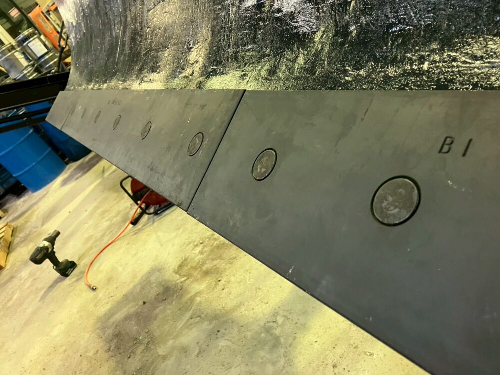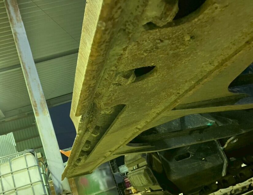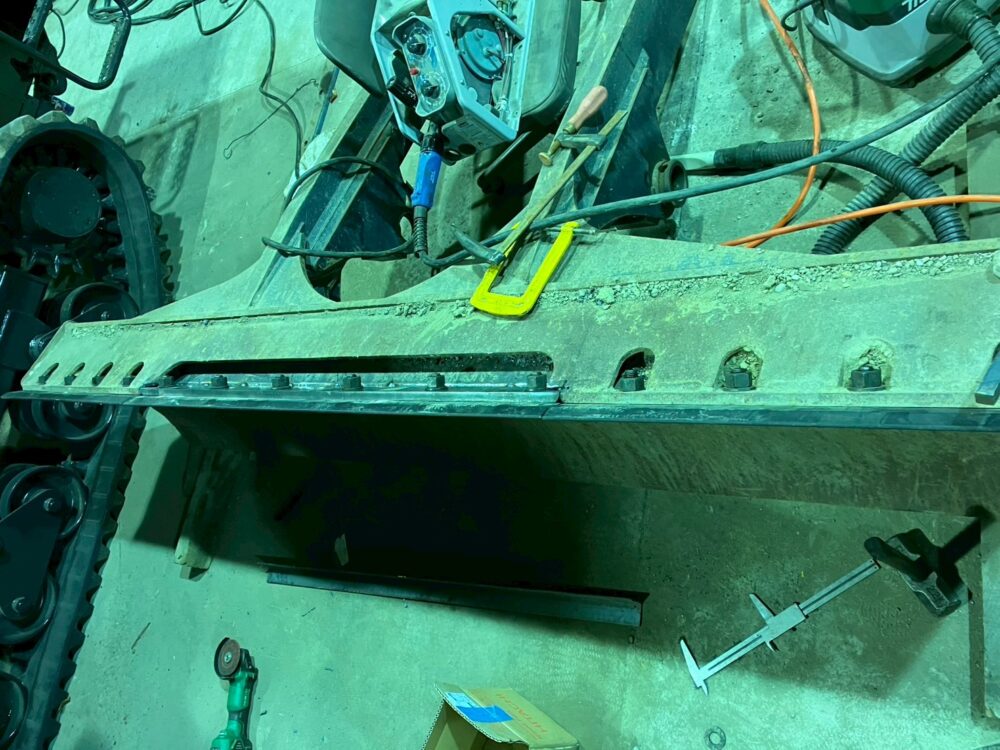 本日は、日立建機の油圧ショベル・ZX135US-6の排土板修理の様子をお届けします。「ブレードが曲がってしまっており、整地しづらくて困っている。」でご相談いただきました。