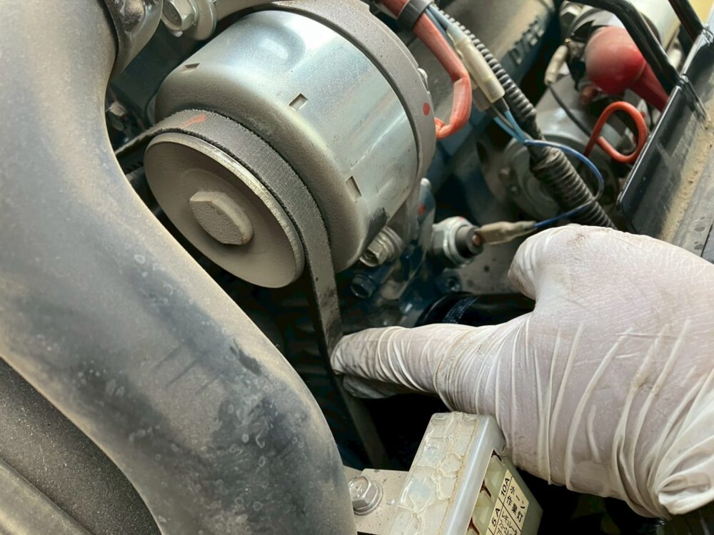 定期メンテナンス クボタU-008 定期メンテナンス before メンテナンス前のエンジンルームの様子です。 after エンジンルーム・ラジエーター周りもエアブローし、軽く洗い流して綺麗になりました。 ご依頼背景 こんにちは、彩重機エンジニアリングです。 クボタのミニユンボ・U-008の定期メンテナンスの様子をご紹介します。こちらの機械は3年前に新車で購入され、3年間ノーメンテナンスだったそうです。稼働時間は150時間程度でしたが、ローアワーでも使用状況によっては早めにメンテナンスしたほうがいい場合もあります。 【メンテナンス実施内容】 ・エンジンオイル交換 ・エンジンオイルフィルター交換 ・燃料(フューエル)フィルター交換 ・クーラントの点検・補充 ・アジャスターシリンダーでゴムクローラーの張り具合の調整 ・必要箇所のグリスアップ、エンジンルーム、ラジエーター周りの清掃 【同じようなお悩みの方へ】 ミニユンボの初回メンテナンス推奨稼働時間は50-100時間程度です。その後の定期メンテナンスは250時間毎が目安となりますので、お手持ちの機械の稼働時間も確認してみてくださいね。 大事な愛機を守るためにも、定期メンテナンスの実施は怠らないようにしましょう。 その他のメンテナンス事例はこちらから 重機のことなら、彩重機になんでもおまかせください! LINEお友達登録はこちらから 詳細説明 まずはエンジンオイルをドレーンしていきます。 ドレーンしたエンジンオイルです。稼働時間は150時間程度ですが、これだけ汚れてます。 ファンベルトの交換は行いませんでしたが、少したるんでいたので調整していきます。 クーラントの点検補充をしています。 ゴムクローラーがたるんでしまっています。 アジャスターシリンダーでテンションを調整します。ピンと張るのではなく、適度なたわみ(遊び)は必要です。 公式LINEからも問い合わせが可能です! 公式LINEお友達募集中! 友達登録で建機プロショップで使える お得なクーポンプレゼント! 048-501-6352 お電話でお問い合わせ受付:9:00~19:00 修理事例一覧油圧ホース製作・修理 シリンダー修理 エンジン関連修理 油圧システム修理 電気系統修理 走行装置・足回り修理 板金塗装・溶接関連 その他 定期メンテナンス