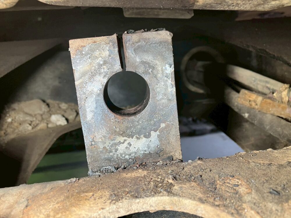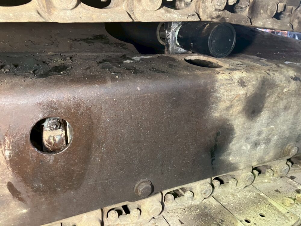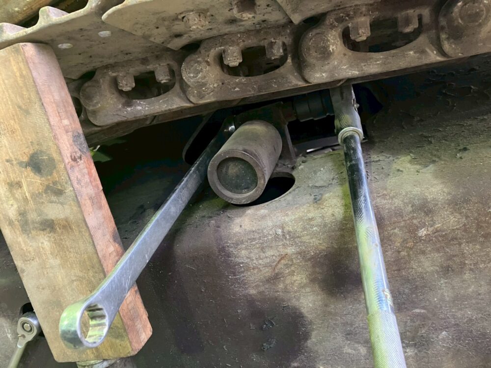 上部ローラーが曲がってしまうと、重いクローラーの内側だけが上部ローラーと干渉することになり、偏摩耗が発生。さらに放置していると、破損してしまい現場で鉄シューが外れてしまう、なんてことも。