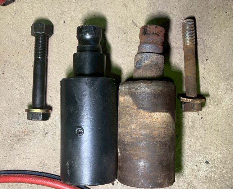 走行装置・足回り修理 CAT305E2CR 上部ローラー交換修理 before 画像ではわかりづらいですが、内側の方が曲がってしまっています。 after 新品のキャリアローラーに交換しました。足回りの異常は見落としがちですので、月に一度は確認するようにすると安心です。 ご依頼背景 こんにちは、彩重機エンジニアリングです。 今回はキャタピラー社の油圧ショベル・305E2CRの上部ローラーの修理の様子をお届けします。上部ローラーとは、キャリアローラーとも呼ばれる部品です。上部の履帯(クローラー)のガイドとなり、たるみを抑えて走行を滑らかにする役割があります。 上部ローラーが曲がってしまうと、重いクローラーの内側だけが上部ローラーと干渉することになり、偏摩耗が発生。さらに放置していると、破損してしまい現場で鉄シューが外れてしまう、なんてことも。 では早速修理していきます。 【修理方法】 鉄キャタ・ボルトを緩める。 古いキャリアローラーを外す。 新しいローラーを取り付け、鉄キャタのテンションを調整する。 【同じようなお悩みの方へ】 上部ローラーが曲がってしまうと、重いクローラーの内側だけが上部ローラーと干渉することになり、偏摩耗が発生。さらに放置していると、破損してしまい現場で鉄シューが外れてしまう、なんてことも。 そうなる前に、早めの修理をおすすめしております。出張修理も対応可能ですので、お気軽にご相談くださいね。 その他の足回りの修理事例はこちらから 足回りの修理・部品販売、彩重機におまかせください! LINEお友達登録で、建機プロショップで使える5%OFFクーポン配布中です。この機会にぜひご登録ください。 LINEお友達登録はこちらから 詳細説明 まずはキャリアローラーのボルトから外していきます。錆びていてなかなか外れません。 スライドハンマーなどを使用し、なんとか外すことができました。 左が新品、右が古いキャリアローラーです。古い方はかなり曲がっているのがわかります。 公式LINEからも問い合わせが可能です! 公式LINEお友達募集中! 友達登録で建機プロショップで使える お得なクーポンプレゼント! 048-501-6352 お電話でお問い合わせ受付:9:00~19:00 修理事例一覧油圧ホース製作・修理 シリンダー修理 エンジン関連修理 油圧システム修理 電気系統修理 走行装置・足回り修理 板金塗装・溶接関連 その他 定期メンテナンス