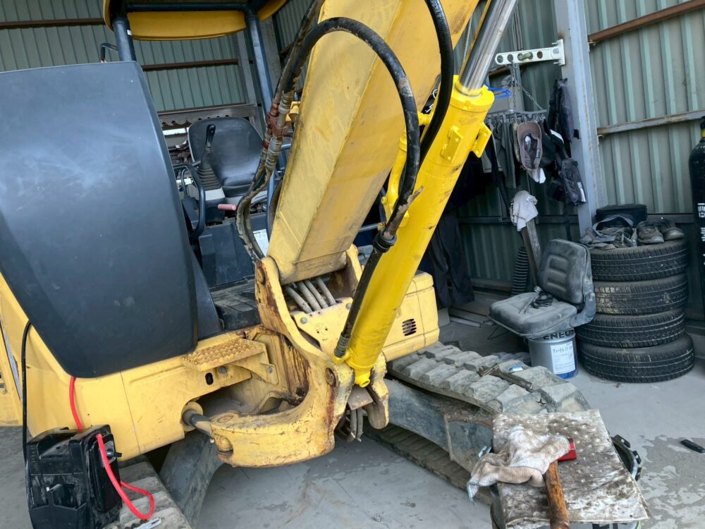 今回は、コマツのパワーショベル・PC40MR-2のブームシリンダーの修理の様子をお届けします。「作業装置が突然動かなくなってしまった。」とのことで、弊社にご連絡いただきました。