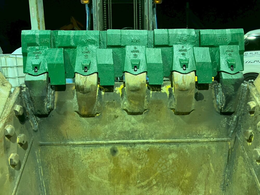 バックホーの要であるバケットですが、ツースアダプターはどうしても先端は掘削の際に少しずつ摩耗していってしまいます。特に両端は力が加わりやすく、真ん中と比較して摩耗が激しい傾向があります。「掘削しづらいな。」と作業時の違和感を感じたら、バケットの点検をしてみてくださいね。