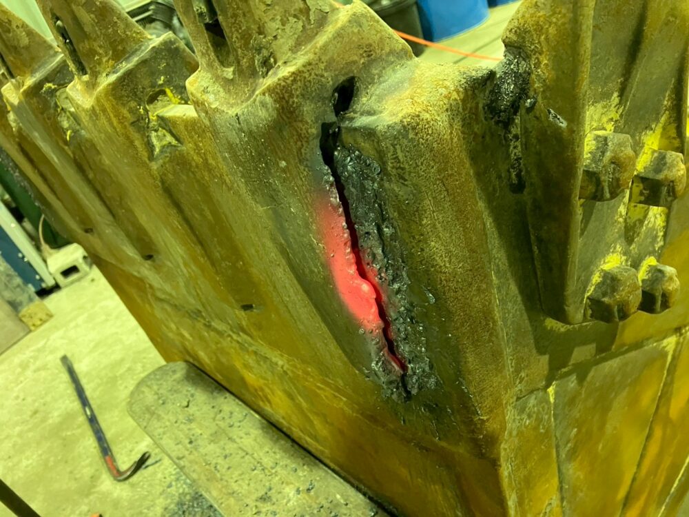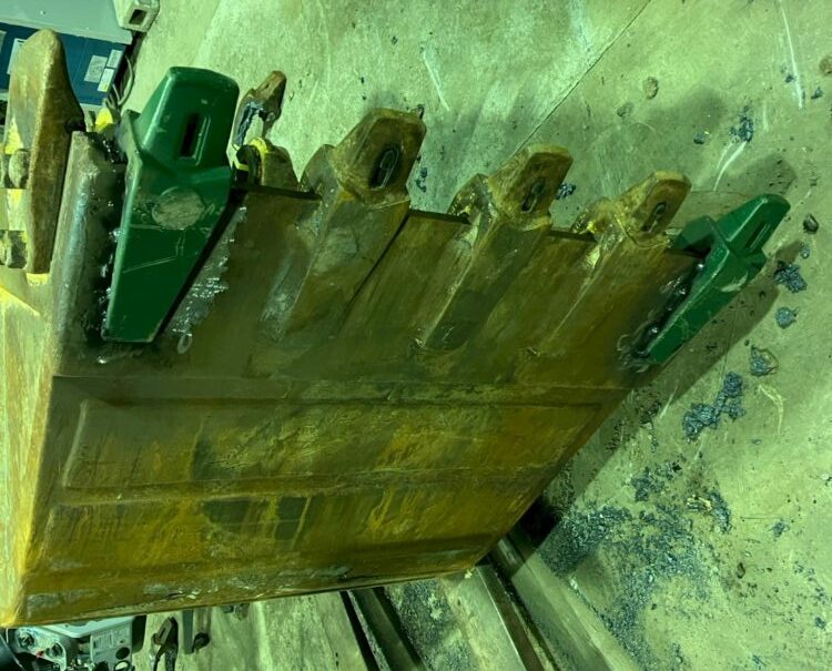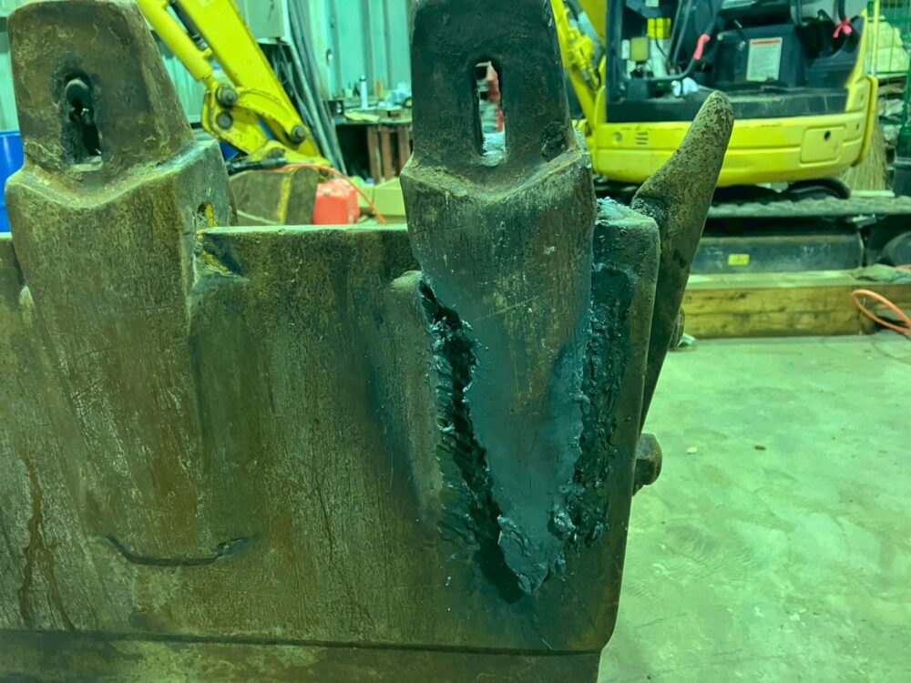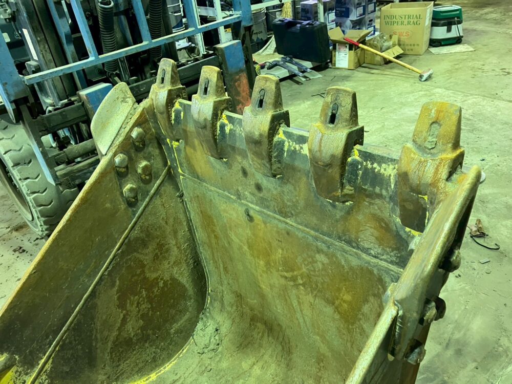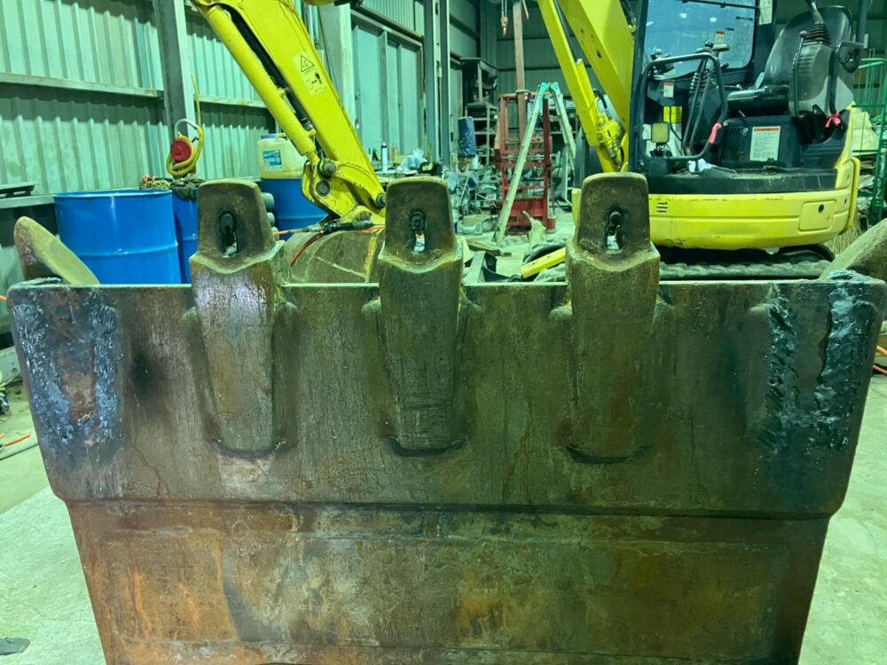 本日は、住友建機の油圧ショベル・SH135X-7のバケット修理の様子をお届けします。「両端にあるツースアダプターが外れてしまい、仕事にならない。」とのことで修理をご依頼いただきました。今回はお客様からのご要望で、両端のアダプターのみ交換いたしました。