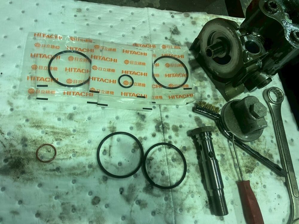 日立ZX75USK-3 エンジンオイルクーラーオイル漏れ修理