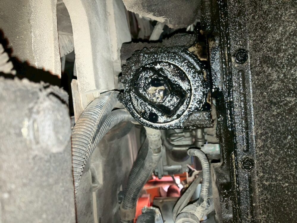 オイル漏れの発見は、シリンダーは目立つところにあるのですぐわかるかもしれませんが、エンジンオイルの油漏れはなかなか気付けないかもしれません。始動前後の点検などをしっかりと行うことで、早期発見に繋がりますので、実施してくださいね。