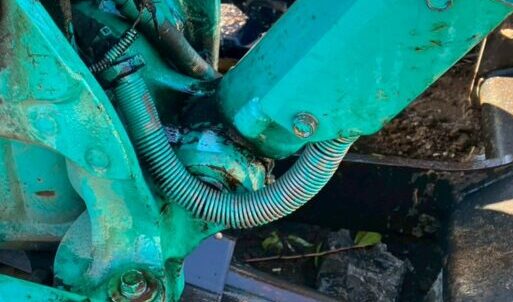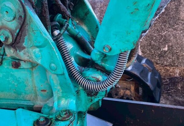 本日は、ヤンマーのミニユンボ・Vio20-3の油圧ホース交換修理の様子をお届けします。「アーム辺りから油がダダ漏れ。エンジンをかけると吹き出してしまう。」と現場で機械を動かせずにお困りの様子でした。